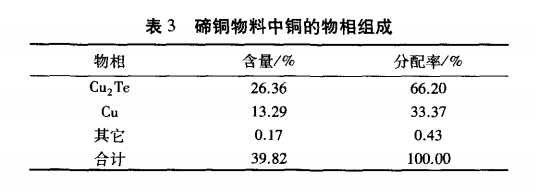 上述分析结果表明,该碲铜物料碲主要存在于碲化铜中,而铜主要以碲化铜和铜单质形式存在。