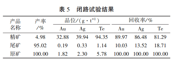 通过对尼尔森重选以及尾矿浮选条件的全面研究和探讨,确定闭路试验流程如图6所示,结果如表5所示。