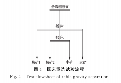 对强磁后的粗精矿进行悬振锥面选矿机重选试验,悬振锥面选矿机是依据拜格诺剪切松散理论和流膜选矿原理研制而成的新型微细粒重选设备,适宜分选粒度为100〜20 gm的矿泥山。利用悬震锥面选矿机重选除去细泥, 进一步提高入选粒度的均匀程度。