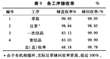 从表8可看出,重结晶杂质总量小于38mg/kg,产品纯度达4N,各项杂质满足行业YS/T894-2013标准中优等品标准(最高级)。